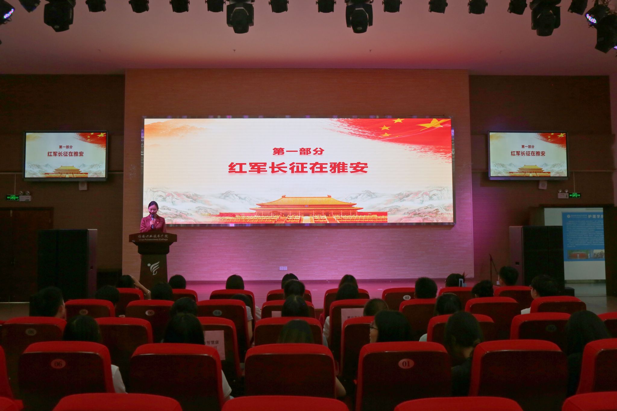 第三篇章由388vip太阳集团党总支第三党支部宣传委员王丽主讲,在优美激昂的音乐中,一张张图片、一个个人物事迹依序展现在大家眼前。大家在对公司及388vip太阳集团发展史了解的同时,对红军护士牟炳贞、“红色军医”彭龙伯的革命英雄事迹留下深刻印象,被忠诚如山、干净如雪、担当如石的新时代夹金山精神所感动。最后当介绍到公司培养的勇救落入粪坑小孩的解雪连、地铁急救患者的徐琳、收到产妇感谢信的杨泽美、杨雅娴、成都急救小哥陈昌盛等8位优秀毕业生代表时,现场响起了热烈的掌声,她们作为共产党员践行初心、危难中敢于挺身而出的行为、勇于担当的精神深深感染和打动了大家。