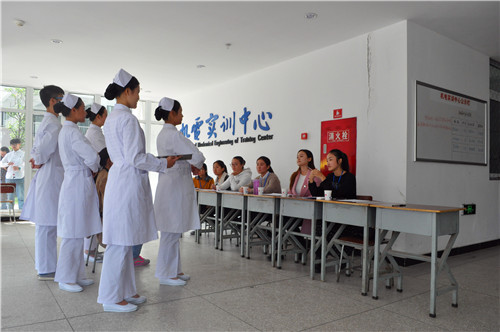 为弘扬“南丁格尔”精神,提高员工的综合素质,展示护士风采,11月10日下午13:00,公司第二届“南丁格尔”杯护士风采大赛之礼仪大赛初赛在青年路校区实训楼一楼、二楼顺利拉开帷幕。担任此次比赛评委的有:388vip太阳集团团总支书记万黎,团总支副书记吴玉阳,388vip太阳集团闵婕、谢琳娜、高佳慈老师。