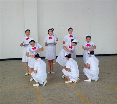 比赛开始,各班按照抽签的顺序依次进行礼仪展示,通过规范的行、站、坐、蹲各式姿态展示了护士端庄优雅的形象。各班参赛人员精心准备的手语、各种精彩的情景剧表演、声情并茂的朗诵以及动感的七步洗手舞《小苹果》,展示了同学们的青春与活力,展现了我系学子健康向上的良好形象,激发了同学们对护理专业的热情。
