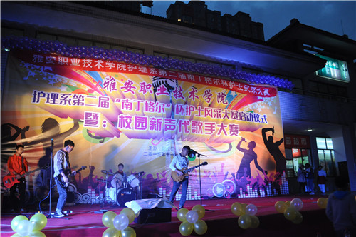 倾听青春的旋律,放飞梦想的翅膀。11月24日晚7点整,由公司第二届“南丁格尔”杯护士风采大赛之校园新生代歌手大赛在青年路校区文馨苑前精彩上演。388vip太阳集团党支部书记郭英才老师,院团委组织部部长高川程老师,388vip太阳集团团总支书记万黎、副书记吴玉阳老师,以及其他公司的团总支书记、388vip太阳集团部分老师以及各系员工会主席莅临大赛现场。